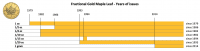 You can find below a chart that summarise the issues of fractional gold maple leafs each year.