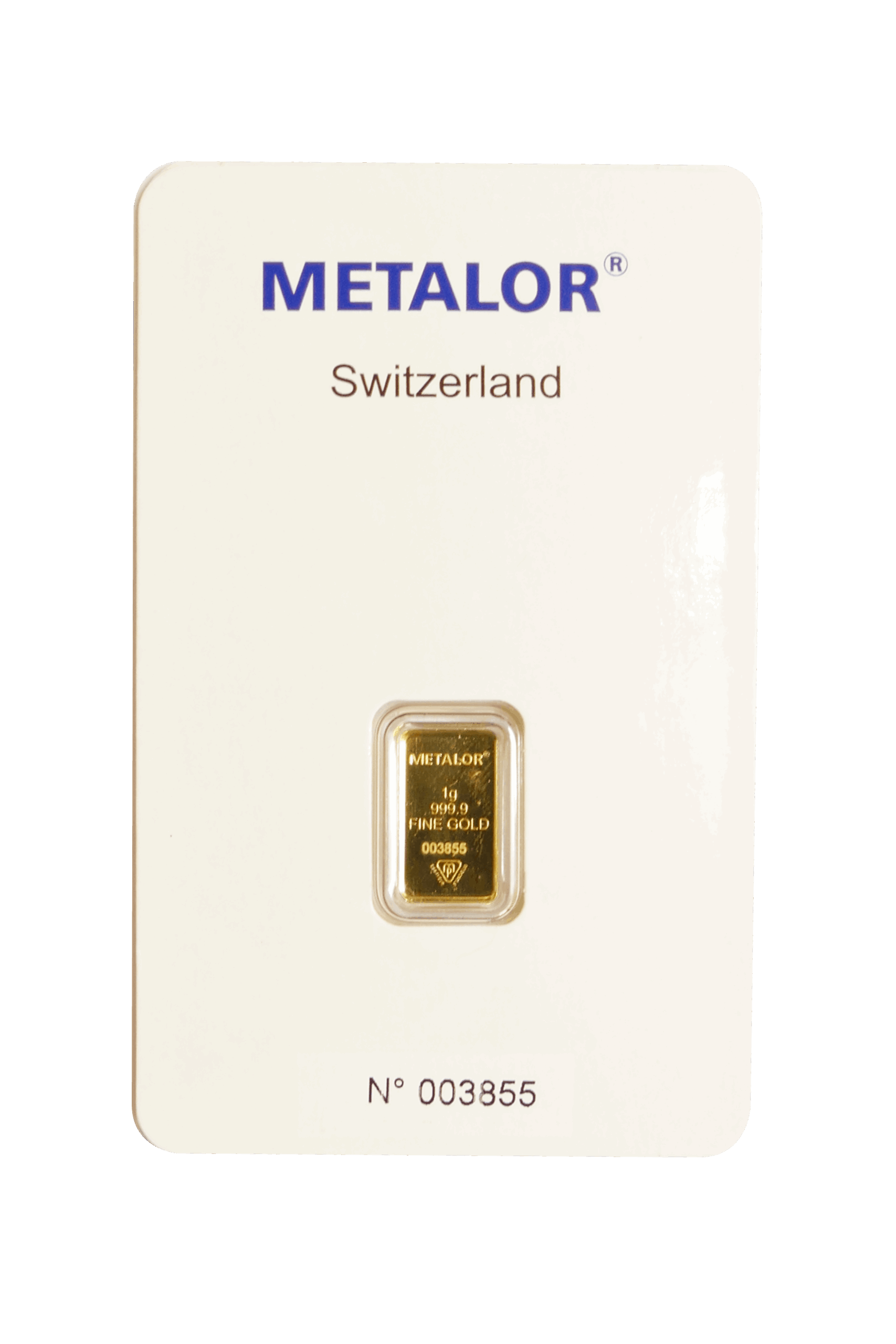 1 gram gold bars are the cheapest bars available for sale. Made of 24 carats (999.9) fine gold, they are the cheapest option to start investing in gold. The 1g Metalor bars come in package printed with a unique serial number that match the number on the bullion bar.