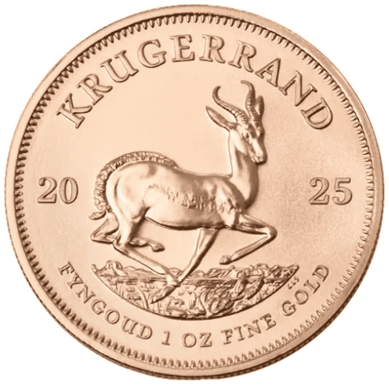 The 2025 edition of the iconic gold Krugerrand, the world’s most renowned one-ounce gold bullion coin.